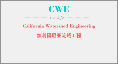 英文缩略词“CWE”经常作为“California Watershed Engineering”的英文缩写来使用,中文表示:“加利福尼亚流域工程”。本文将详细介绍英文缩写词CWE所代表英文单词,其对应的中文拼音、详细解释以及在英语中的流行度。此外,还有关于缩略词CWE的分类、应用领域及相关应用示例等。