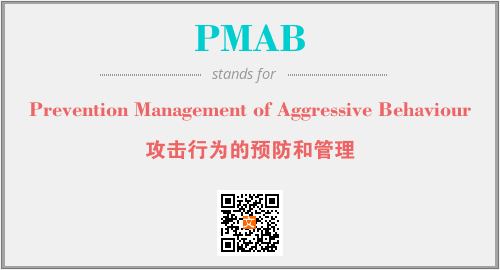 上述内容是“Prevention Management of Aggressive Behaviour”作为“PMAB”的缩写,解释为“攻击行为的预防和管理”时的信息,以及英文缩略词PMAB所代表的英文单词,其对应的中文拼音、详细解释以及在英文中的流行度和相关分类、应用领域及应用示例等。
