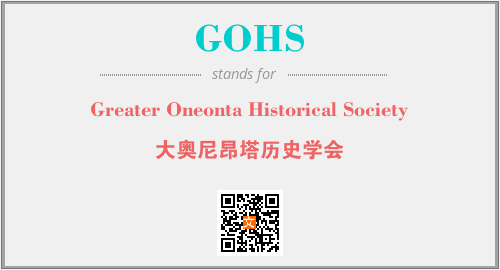 英文缩略词“GOHS”经常作为“Greater Oneonta Historical Society”的英文缩写来使用,中文表示:“大奥尼昂塔历史学会”。本文将详细介绍英文缩写词GOHS所代表英文单词,其对应的中文拼音、详细解释以及在英语中的流行度。此外,还有关于缩略词GOHS的分类、应用领域及相关应用示例等。