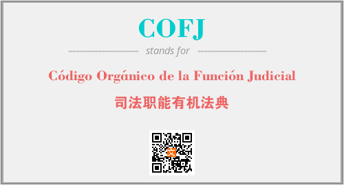 英文缩略词“COFJ”经常作为“Código Orgánico de la Función Judicial”的英文缩写来使用,中文表示:“司法职能有机法典”。本文将详细介绍英文缩写词COFJ所代表英文单词,其对应的中文拼音、详细解释以及在英语中的流行度。此外,还有关于缩略词COFJ的分类、应用领域及相关应用示例等。