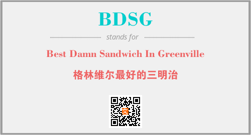以上为Best Damn Sandwich In Greenville英文缩略词BDSG的中文解释,以及该英文缩写在英语的流行度、分类和应用领域方面的信息。
