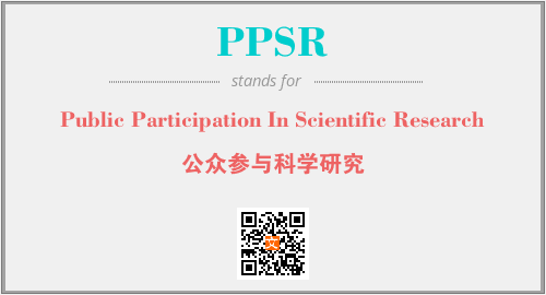 上述内容是“Public Participation In Scientific Research”作为“PPSR”的缩写,解释为“公众参与科学研究”时的信息,以及英文缩略词PPSR所代表的英文单词,其对应的中文拼音、详细解释以及在英文中的流行度和相关分类、应用领域及应用示例等。