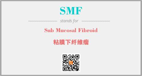 上述内容是“Sub Mucosal Fibroid”作为“SMF”的缩写,解释为“粘膜下纤维瘤”时的信息,以及英文缩略词SMF所代表的英文单词,其对应的中文拼音、详细解释以及在英文中的流行度和相关分类、应用领域及应用示例等。