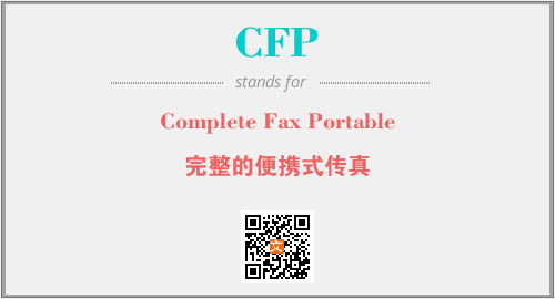 英文缩略词“CFP”经常作为“Complete Fax Portable”的英文缩写来使用,中文表示:“完整的便携式传真”。本文将详细介绍英文缩写词CFP所代表英文单词,其对应的中文拼音、详细解释以及在英语中的流行度。此外,还有关于缩略词CFP的分类、应用领域及相关应用示例等。
