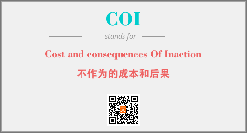 上述内容是“Cost and consequences Of Inaction”作为“COI”的缩写,解释为“不作为的成本和后果”时的信息,以及英文缩略词COI所代表的英文单词,其对应的中文拼音、详细解释以及在英文中的流行度和相关分类、应用领域及应用示例等。