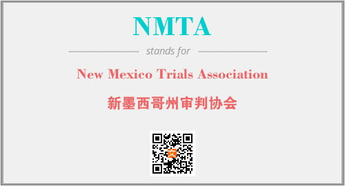 上述内容是“New Mexico Trials Association”作为“NMTA”的缩写,解释为“新墨西哥州审判协会”时的信息,以及英文缩略词NMTA所代表的英文单词,其对应的中文拼音、详细解释以及在英文中的流行度和相关分类、应用领域及应用示例等。