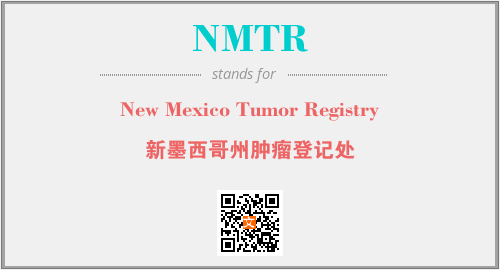 上述内容是“New Mexico Tumor Registry”作为“NMTR”的缩写,解释为“新墨西哥州肿瘤登记处”时的信息,以及英文缩略词NMTR所代表的英文单词,其对应的中文拼音、详细解释以及在英文中的流行度和相关分类、应用领域及应用示例等。