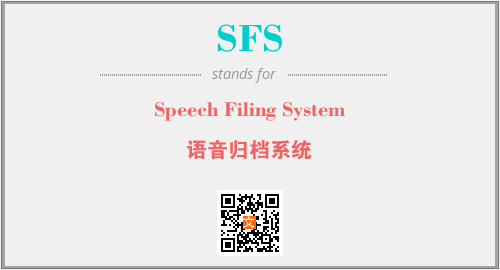 以上为Speech Filing System英文缩略词SFS的中文解释,以及该英文缩写在英语的流行度、分类和应用领域方面的信息。
