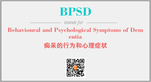 上述内容是“Behavioural and Psychological Symptoms of Dementia”作为“BPSD”的缩写,解释为“痴呆的行为和心理症状”时的信息,以及英文缩略词BPSD所代表的英文单词,其对应的中文拼音、详细解释以及在英文中的流行度和相关分类、应用领域及应用示例等。