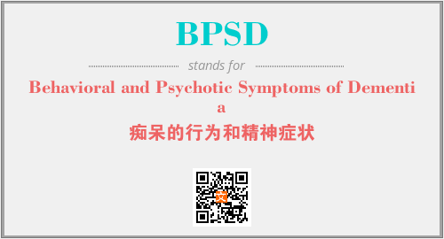 上述内容是“Behavioral and Psychotic Symptoms of Dementia”作为“BPSD”的缩写,解释为“痴呆的行为和精神症状”时的信息,以及英文缩略词BPSD所代表的英文单词,其对应的中文拼音、详细解释以及在英文中的流行度和相关分类、应用领域及应用示例等。