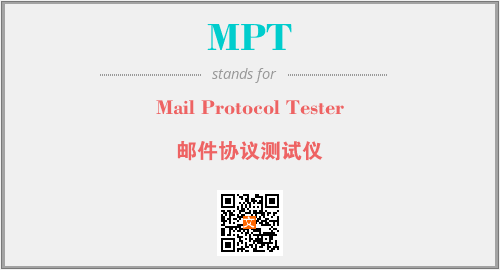 英文缩略词“MPT”经常作为“Mail Protocol Tester”的英文缩写来使用,中文表示:“邮件协议测试仪”。本文将详细介绍英文缩写词MPT所代表英文单词,其对应的中文拼音、详细解释以及在英语中的流行度。此外,还有关于缩略词MPT的分类、应用领域及相关应用示例等。