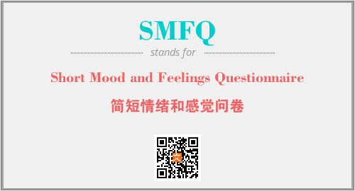 上述内容是“Short Mood and Feelings Questionnaire”作为“SMFQ”的缩写,解释为“简短情绪和感觉问卷”时的信息,以及英文缩略词SMFQ所代表的英文单词,其对应的中文拼音、详细解释以及在英文中的流行度和相关分类、应用领域及应用示例等。