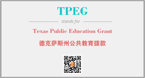 上述内容是“Texas Public Education Grant”作为“TPEG”的缩写,解释为“德克萨斯州公共教育拨款”时的信息,以及英文缩略词TPEG所代表的英文单词,其对应的中文拼音、详细解释以及在英文中的流行度和相关分类、应用领域及应用示例等。