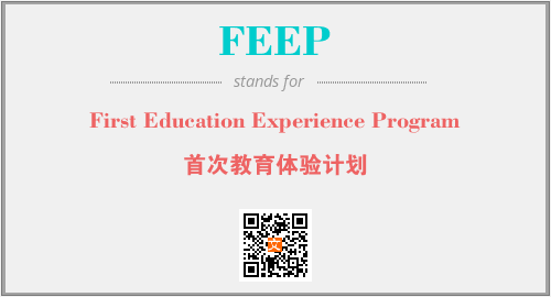 上述内容是“First Education Experience Program”作为“FEEP”的缩写,解释为“首次教育体验计划”时的信息,以及英文缩略词FEEP所代表的英文单词,其对应的中文拼音、详细解释以及在英文中的流行度和相关分类、应用领域及应用示例等。