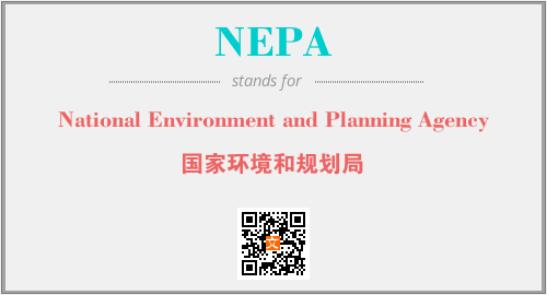 英文缩略词“NEPA”经常作为“National Environment and Planning Agency”的英文缩写来使用,中文表示:“国家环境和规划局”。本文将详细介绍英文缩写词NEPA所代表英文单词,其对应的中文拼音、详细解释以及在英语中的流行度。此外,还有关于缩略词NEPA的分类、应用领域及相关应用示例等。