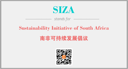 上述内容是“Sustainability Initiative of South Africa”作为“SIZA”的缩写,解释为“南非可持续发展倡议”时的信息,以及英文缩略词SIZA所代表的英文单词,其对应的中文拼音、详细解释以及在英文中的流行度和相关分类、应用领域及应用示例等。