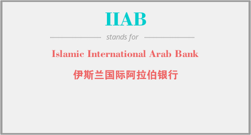 上述内容是“Islamic International Arab Bank”作为“IIAB”的缩写,解释为“伊斯兰国际阿拉伯银行”时的信息,以及英文缩略词IIAB所代表的英文单词,其对应的中文拼音、详细解释以及在英文中的流行度和相关分类、应用领域及应用示例等。