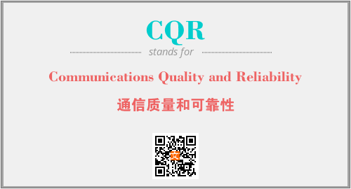 上述内容是“Communications Quality and Reliability”作为“CQR”的缩写,解释为“通信质量和可靠性”时的信息,以及英文缩略词CQR所代表的英文单词,其对应的中文拼音、详细解释以及在英文中的流行度和相关分类、应用领域及应用示例等。