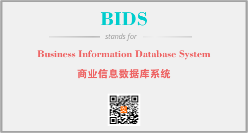 以上为Business Information Database System英文缩略词BIDS的中文解释,以及该英文缩写在英语的流行度、分类和应用领域方面的信息。