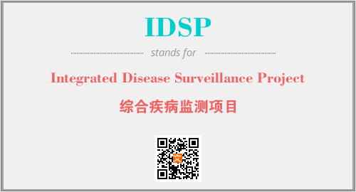 英文缩略词“IDSP”经常作为“Integrated Disease Surveillance Project”的英文缩写来使用,中文表示:“综合疾病监测项目”。本文将详细介绍英文缩写词IDSP所代表英文单词,其对应的中文拼音、详细解释以及在英语中的流行度。此外,还有关于缩略词IDSP的分类、应用领域及相关应用示例等。