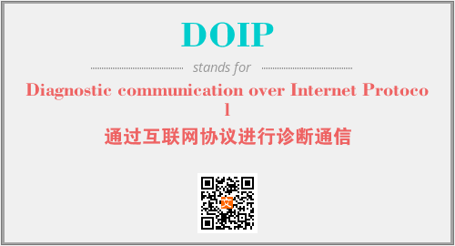英文缩略词“DOIP”经常作为“Diagnostic communication over Internet Protocol”的英文缩写来使用,中文表示:“通过互联网协议进行诊断通信”。本文将详细介绍英文缩写词DOIP所代表英文单词,其对应的中文拼音、详细解释以及在英语中的流行度。此外,还有关于缩略词DOIP的分类、应用领域及相关应用示例等。