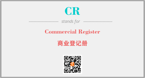 上述内容是“Commercial Register”作为“CR”的缩写,解释为“商业登记册”时的信息,以及英文缩略词CR所代表的英文单词,其对应的中文拼音、详细解释以及在英文中的流行度和相关分类、应用领域及应用示例等。