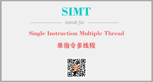 上述内容是“Single Instruction Multiple Thread”作为“SIMT”的缩写,解释为“单指令多线程”时的信息,以及英文缩略词SIMT所代表的英文单词,其对应的中文拼音、详细解释以及在英文中的流行度和相关分类、应用领域及应用示例等。