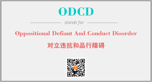 上述内容是“Oppositional Defiant And Conduct Disorder”作为“ODCD”的缩写,解释为“对立违抗和品行障碍”时的信息,以及英文缩略词ODCD所代表的英文单词,其对应的中文拼音、详细解释以及在英文中的流行度和相关分类、应用领域及应用示例等。