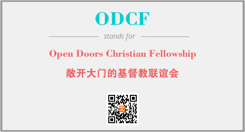 上述内容是“Open Doors Christian Fellowship”作为“ODCF”的缩写,解释为“敞开大门的基督教联谊会”时的信息,以及英文缩略词ODCF所代表的英文单词,其对应的中文拼音、详细解释以及在英文中的流行度和相关分类、应用领域及应用示例等。