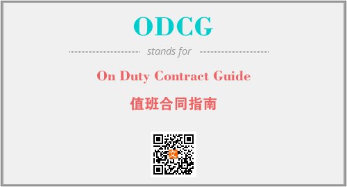 英文缩略词“ODCG”经常作为“On Duty Contract Guide”的英文缩写来使用,中文表示:“值班合同指南”。本文将详细介绍英文缩写词ODCG所代表英文单词,其对应的中文拼音、详细解释以及在英语中的流行度。此外,还有关于缩略词ODCG的分类、应用领域及相关应用示例等。