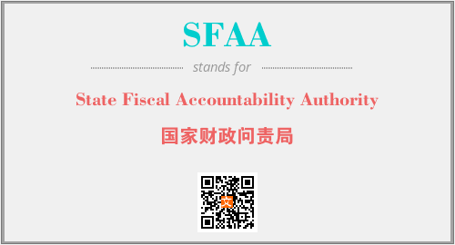 上述内容是“State Fiscal Accountability Authority”作为“SFAA”的缩写,解释为“国家财政问责局”时的信息,以及英文缩略词SFAA所代表的英文单词,其对应的中文拼音、详细解释以及在英文中的流行度和相关分类、应用领域及应用示例等。