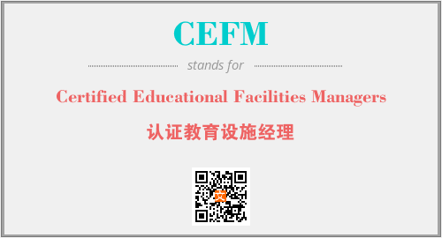 英文缩略词“CEFM”经常作为“Certified Educational Facilities Managers”的英文缩写来使用,中文表示:“认证教育设施经理”。本文将详细介绍英文缩写词CEFM所代表英文单词,其对应的中文拼音、详细解释以及在英语中的流行度。此外,还有关于缩略词CEFM的分类、应用领域及相关应用示例等。