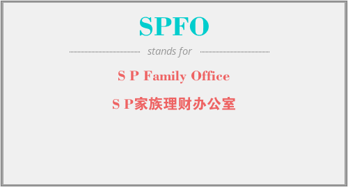上述内容是“S P Family Office”作为“SPFO”的缩写,解释为“S P家族理财办公室”时的信息,以及英文缩略词SPFO所代表的英文单词,其对应的中文拼音、详细解释以及在英文中的流行度和相关分类、应用领域及应用示例等。