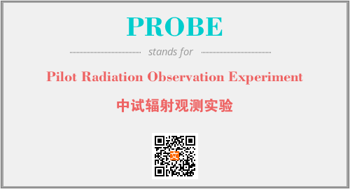 上述内容是“Pilot Radiation Observation Experiment”作为“PROBE”的缩写,解释为“中试辐射观测实验”时的信息,以及英文缩略词PROBE所代表的英文单词,其对应的中文拼音、详细解释以及在英文中的流行度和相关分类、应用领域及应用示例等。