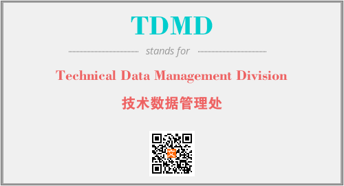 英文缩略词“TDMD”经常作为“Technical Data Management Division”的英文缩写来使用,中文表示:“技术数据管理处”。本文将详细介绍英文缩写词TDMD所代表英文单词,其对应的中文拼音、详细解释以及在英语中的流行度。此外,还有关于缩略词TDMD的分类、应用领域及相关应用示例等。
