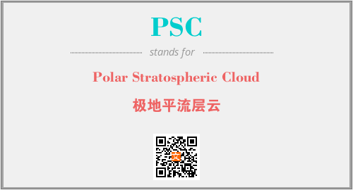 上述内容是“Polar Stratospheric Cloud”作为“PSC”的缩写,解释为“极地平流层云”时的信息,以及英文缩略词PSC所代表的英文单词,其对应的中文拼音、详细解释以及在英文中的流行度和相关分类、应用领域及应用示例等。