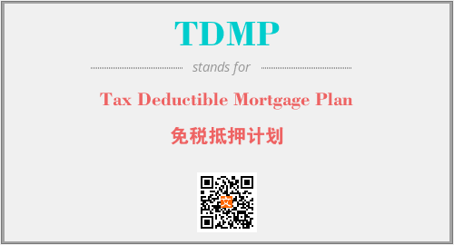 以上为Tax Deductible Mortgage Plan英文缩略词TDMP的中文解释,以及该英文缩写在英语的流行度、分类和应用领域方面的信息。