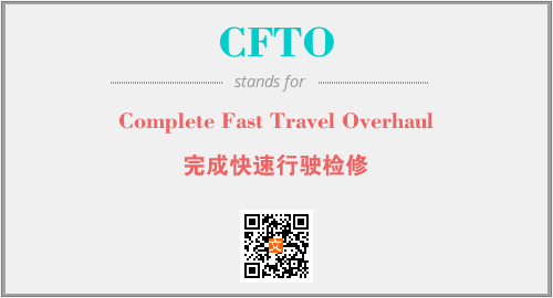 上述内容是“Complete Fast Travel Overhaul”作为“CFTO”的缩写,解释为“完成快速行驶检修”时的信息,以及英文缩略词CFTO所代表的英文单词,其对应的中文拼音、详细解释以及在英文中的流行度和相关分类、应用领域及应用示例等。
