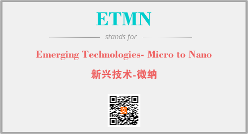 上述内容是“Emerging Technologies- Micro to Nano”作为“ETMN”的缩写,解释为“新兴技术-微纳”时的信息,以及英文缩略词ETMN所代表的英文单词,其对应的中文拼音、详细解释以及在英文中的流行度和相关分类、应用领域及应用示例等。