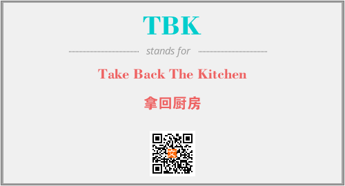 上述内容是“Take Back The Kitchen”作为“TBK”的缩写,解释为“拿回厨房”时的信息,以及英文缩略词TBK所代表的英文单词,其对应的中文拼音、详细解释以及在英文中的流行度和相关分类、应用领域及应用示例等。