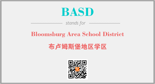 上述内容是“Bloomsburg Area School District”作为“BASD”的缩写,解释为“布卢姆斯堡地区学区”时的信息,以及英文缩略词BASD所代表的英文单词,其对应的中文拼音、详细解释以及在英文中的流行度和相关分类、应用领域及应用示例等。