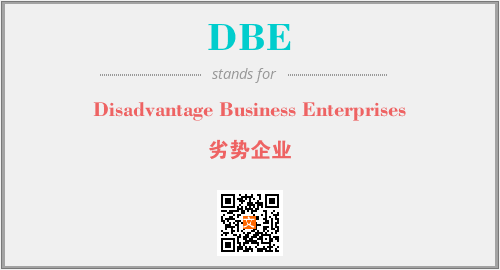 英文缩略词“DBE”经常作为“Disadvantage Business Enterprises”的英文缩写来使用,中文表示:“劣势企业”。本文将详细介绍英文缩写词DBE所代表英文单词,其对应的中文拼音、详细解释以及在英语中的流行度。此外,还有关于缩略词DBE的分类、应用领域及相关应用示例等。