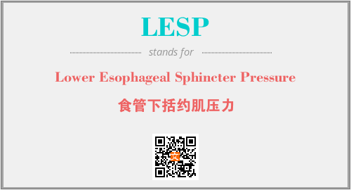 上述内容是“Lower Esophageal Sphincter Pressure”作为“LESP”的缩写,解释为“食管下括约肌压力”时的信息,以及英文缩略词LESP所代表的英文单词,其对应的中文拼音、详细解释以及在英文中的流行度和相关分类、应用领域及应用示例等。