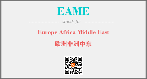 上述内容是“Europe Africa Middle East”作为“EAME”的缩写,解释为“欧洲非洲中东”时的信息,以及英文缩略词EAME所代表的英文单词,其对应的中文拼音、详细解释以及在英文中的流行度和相关分类、应用领域及应用示例等。