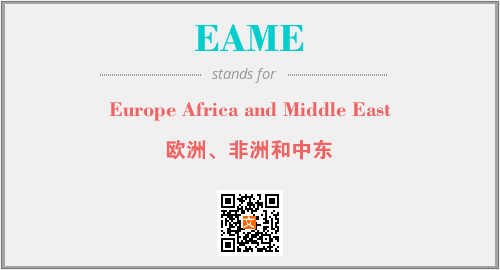 上述内容是“Europe Africa and Middle East”作为“EAME”的缩写,解释为“欧洲、非洲和中东”时的信息,以及英文缩略词EAME所代表的英文单词,其对应的中文拼音、详细解释以及在英文中的流行度和相关分类、应用领域及应用示例等。