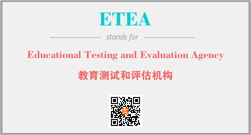 英文缩略词“ETEA”经常作为“Educational Testing and Evaluation Agency”的英文缩写来使用,中文表示:“教育测试和评估机构”。本文将详细介绍英文缩写词ETEA所代表英文单词,其对应的中文拼音、详细解释以及在英语中的流行度。此外,还有关于缩略词ETEA的分类、应用领域及相关应用示例等。