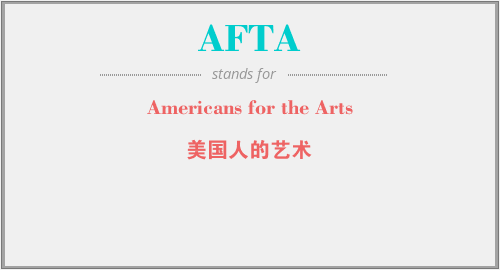 英文缩略词“AFTA”经常作为“Americans for the Arts”的英文缩写来使用,中文表示:“美国人的艺术”。本文将详细介绍英文缩写词AFTA所代表英文单词,其对应的中文拼音、详细解释以及在英语中的流行度。此外,还有关于缩略词AFTA的分类、应用领域及相关应用示例等。
