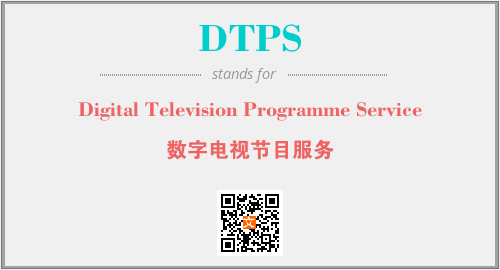 英文缩略词“DTPS”经常作为“Digital Television Programme Service”的英文缩写来使用,中文表示:“数字电视节目服务”。本文将详细介绍英文缩写词DTPS所代表英文单词,其对应的中文拼音、详细解释以及在英语中的流行度。此外,还有关于缩略词DTPS的分类、应用领域及相关应用示例等。