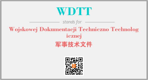 上述内容是“Wojskowej Dokumentacji Techniczno Technologicznej”作为“WDTT”的缩写,解释为“军事技术文件”时的信息,以及英文缩略词WDTT所代表的英文单词,其对应的中文拼音、详细解释以及在英文中的流行度和相关分类、应用领域及应用示例等。