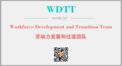 上述内容是“Workforce Development and Transition Team”作为“WDTT”的缩写,解释为“劳动力发展和过渡团队”时的信息,以及英文缩略词WDTT所代表的英文单词,其对应的中文拼音、详细解释以及在英文中的流行度和相关分类、应用领域及应用示例等。